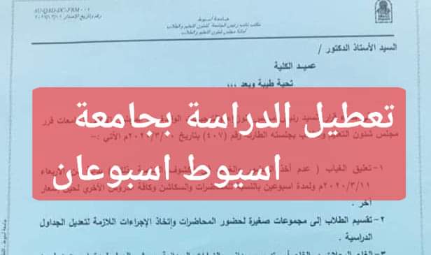 جامعة اسيوط تعليق الغياب لمدة اسبوعان بجميع الكليات